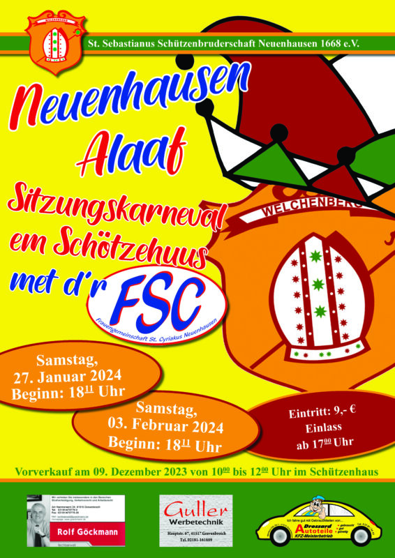 Kartenvorverkauf für die Karnevalssitzungen am 7.12. von 10-12 Uhr im Schützenhaus
