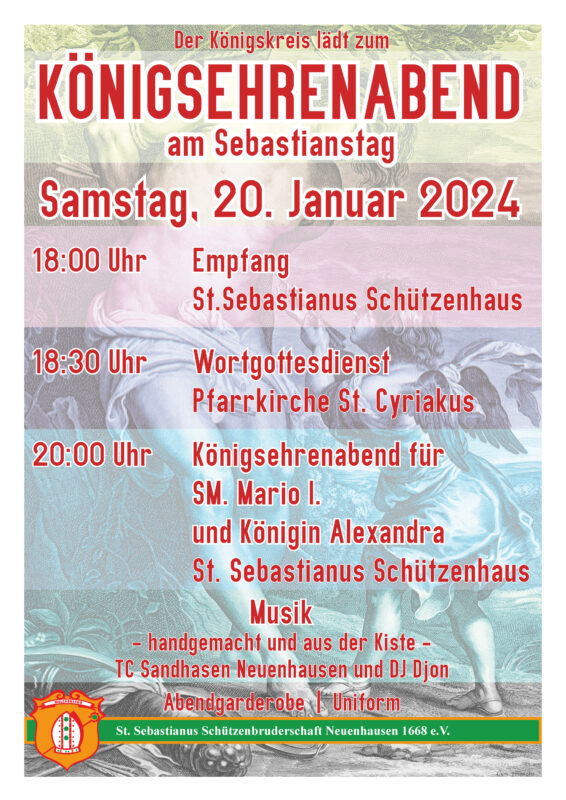 Königsehrenabend und Patronatsfest am 20. Januar 2024