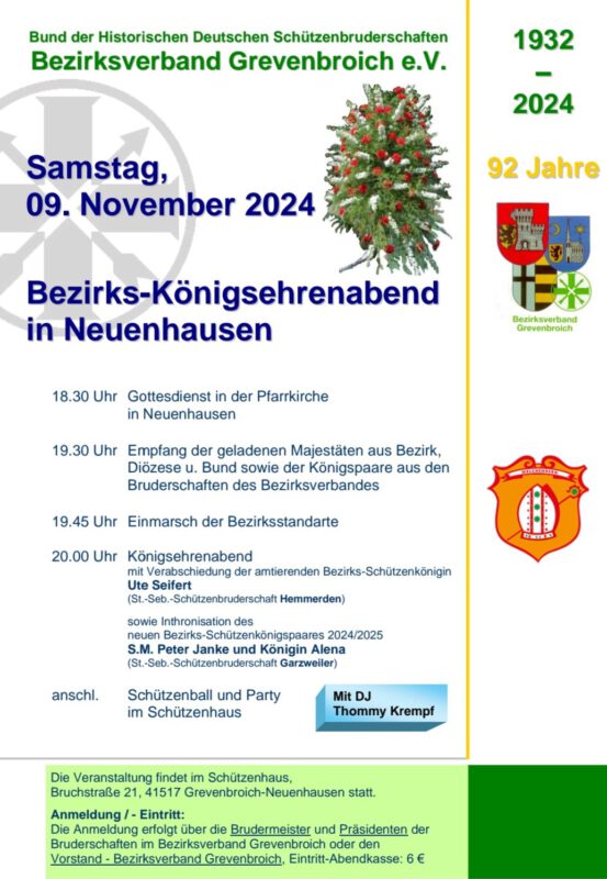 Bezirkskönigsehrenabend am 9. November 2024 in Neuenhausen