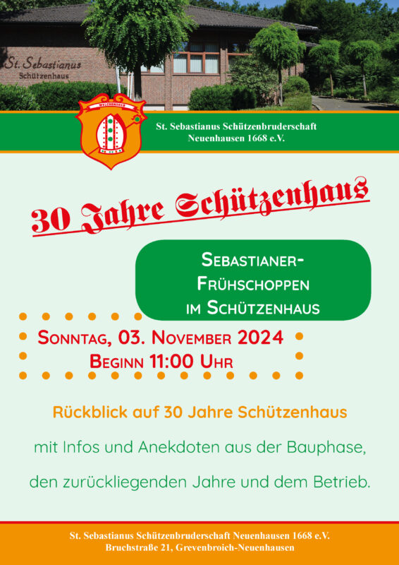 Frühschoppen zum 30-jährigen Bestehen des Schützenhauses